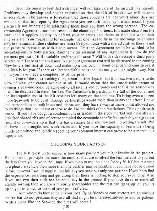 As this is our only means of publicity we would appreciate it if you would make anyone you know, who may be interested in joining out club aware of its existence. The money collected $10 US or $14 Canadian is used only for mailing expenses and is a two year subscription. To join, send a cheque to Dick Adams, 6 Wren Rd., Gloucester, Ontario, Canada, K1J 7H4. Make your cheque out to Dick Adams as the Seawind Pilots Association is not incorporated and does not have a bank account.