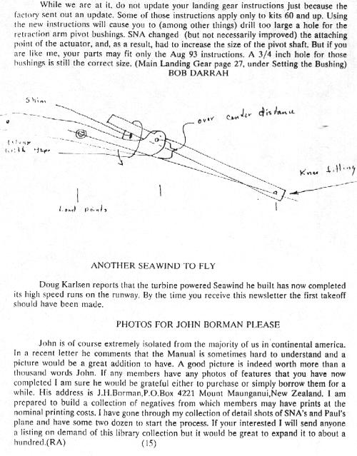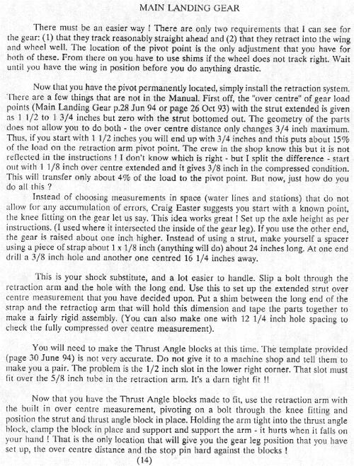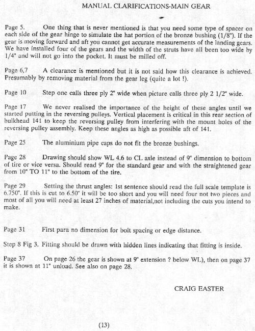 You may have noticed that Craig has been one of the most frequent contributors to the letter. His corrections and observations covering some forty pages of text include over a hundred comments from minor Manual glitches to suggestions on alternate ways to build the plane. I have published about half of these in the Newsletter but have decided with his permission to release them to any member for the cost of their reproduction /postage of $5.00 US.